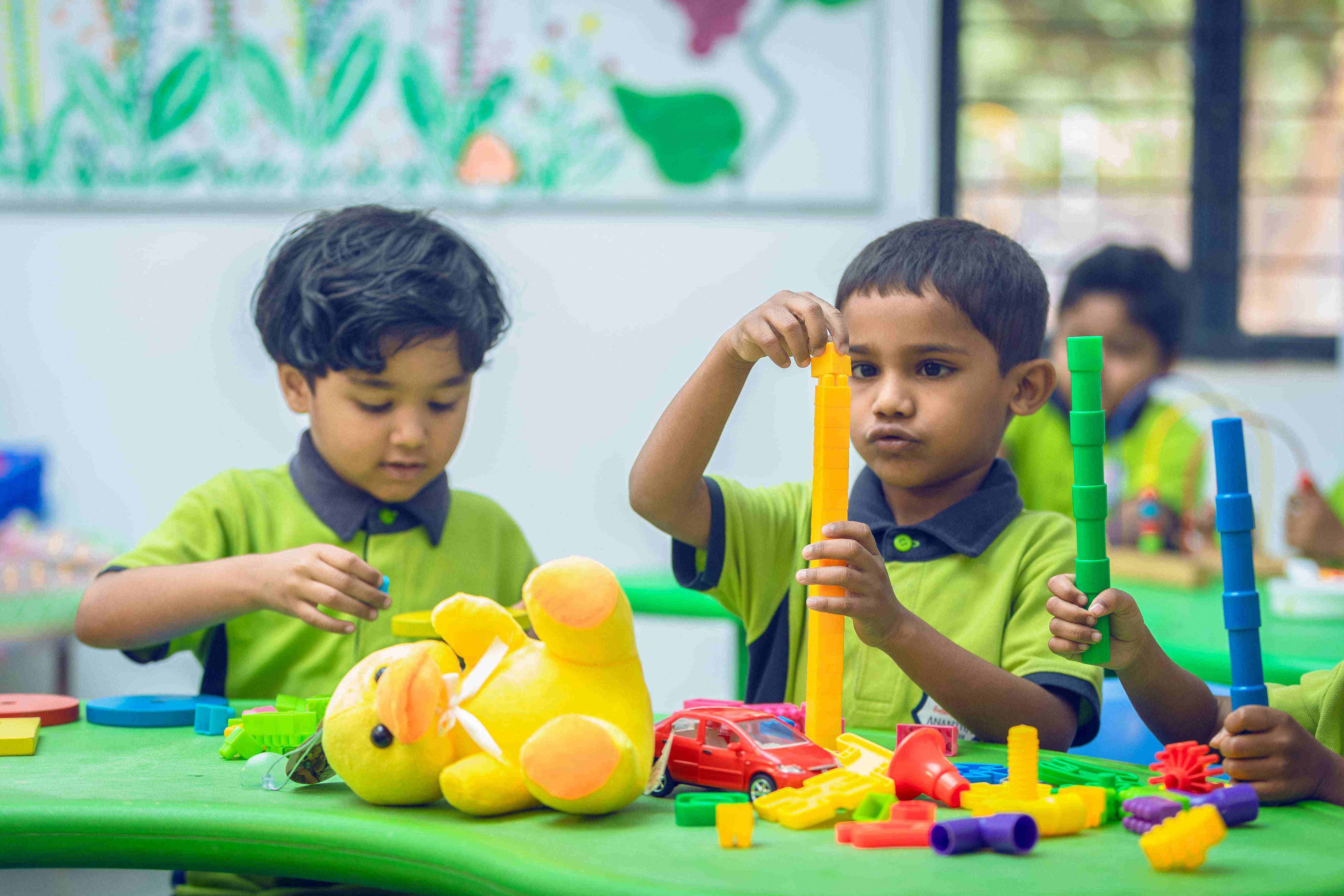 Our Preschool education kindles the playful curiosity of the child, with the freedom to explore in a safe, secure and vibrant green environment. They are encouraged to express themselves through art and play as they are the most natural forms of expression at that age. Children who learn through inquiry and play, develop an intrinsic joyful urge towards learning and go on to succeed academically. The curriculum has been designed based on the best methodologies followed worldwide, and the latest research in education and pedagogy.